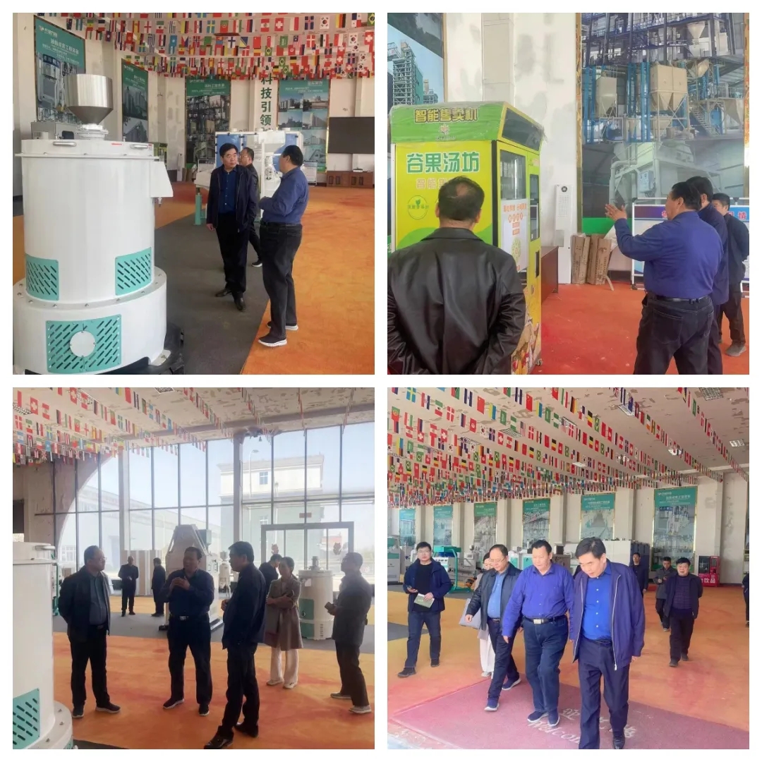 秦局長一行現場查看了生產車間、研發中心、產品展廳等情況,對華豫萬通的現有發展和未來規劃表示肯定。同時指出,當前糧食加工行業需要“科技創新+先進制造”,著力推動糧食加工安全和產業化發展,希望華豫萬通充分發揮行業引領作用,爭當創新驅動發展排頭兵,聚力糧食加工機械智能化、集成化、綠色化發展,為行業高質量發展作出更大貢獻。