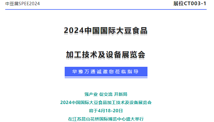 【展會預告】華豫萬通邀您共赴2024中國國際大豆食品加工技術及設備展覽會
