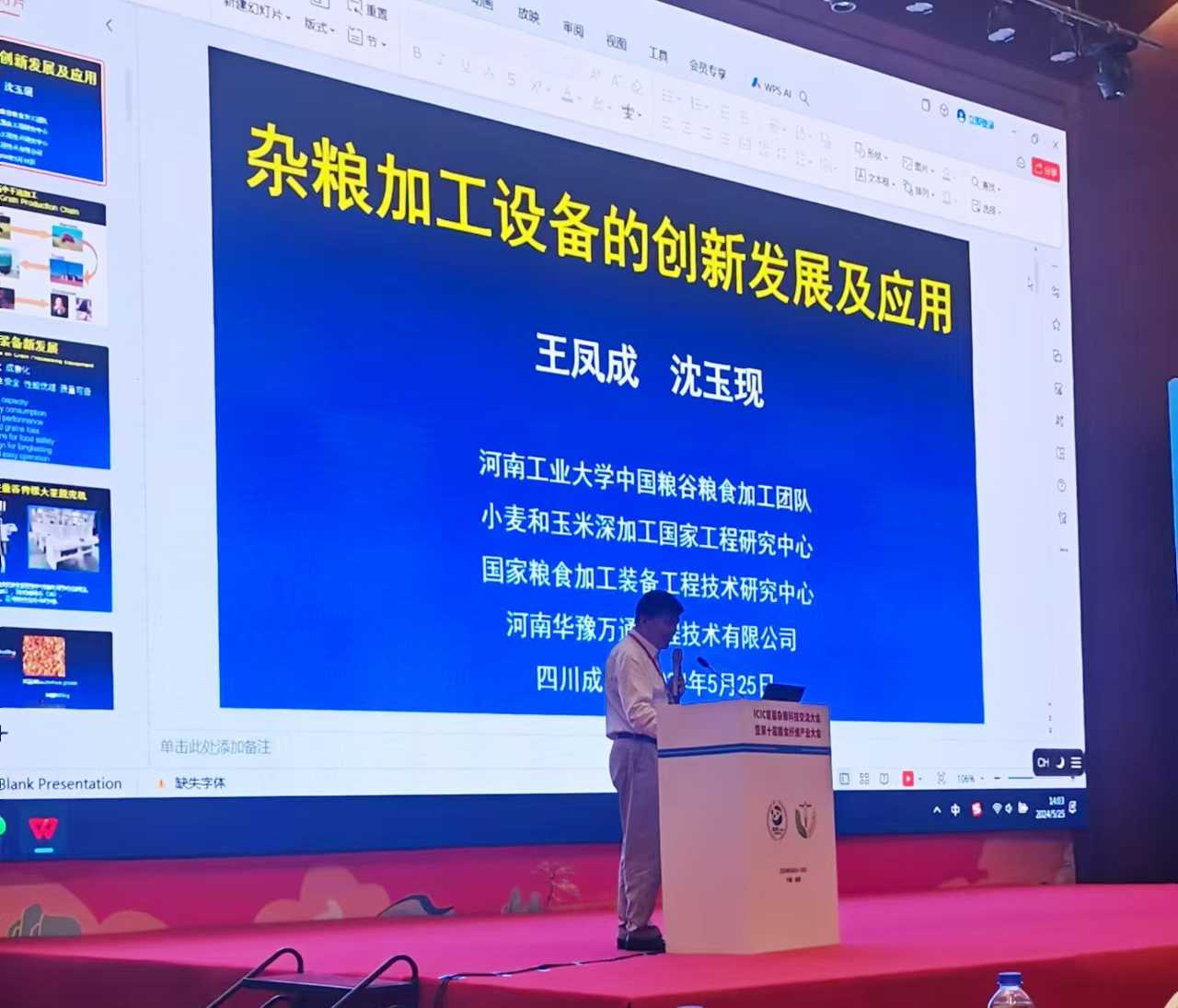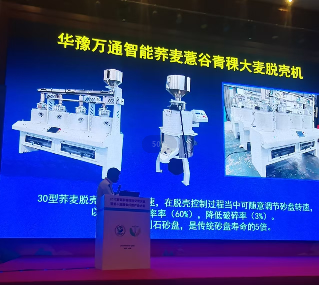 河南工業(yè)大學(xué)中國(guó)糧谷糧食加工團(tuán)隊(duì)王鳳成教授在大會(huì)中向與會(huì)者著重介紹了華豫萬(wàn)通的6款智能雜糧設(shè)備的創(chuàng)新發(fā)展及應(yīng)用。其中,HTY80智能燕麥離心脫殼機(jī)和HTQM35D蕎麥脫殼機(jī)以其卓越性能成為大會(huì)的亮點(diǎn),這兩款設(shè)備在降低生產(chǎn)成本、提高性價(jià)比和產(chǎn)出值等性能方面有大幅提升,HTY80智能燕麥離心脫殼機(jī)更是憑借其卓越的表現(xiàn)榮獲了產(chǎn)品創(chuàng)新獎(jiǎng)。
