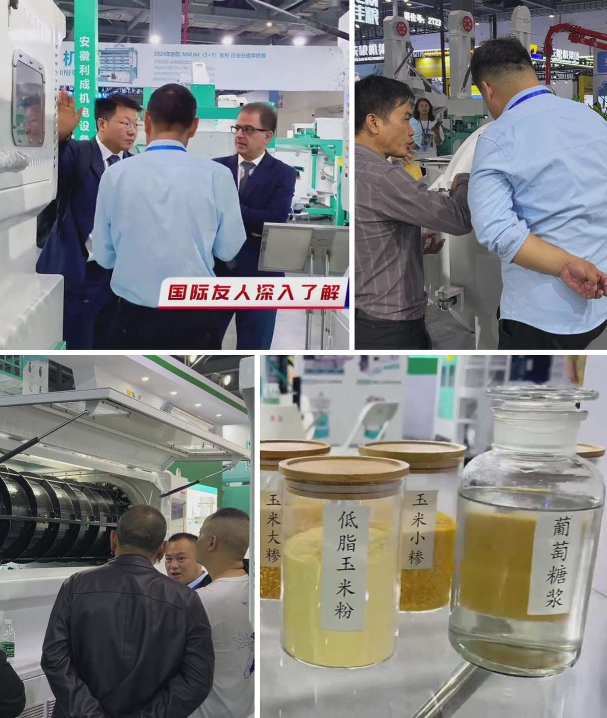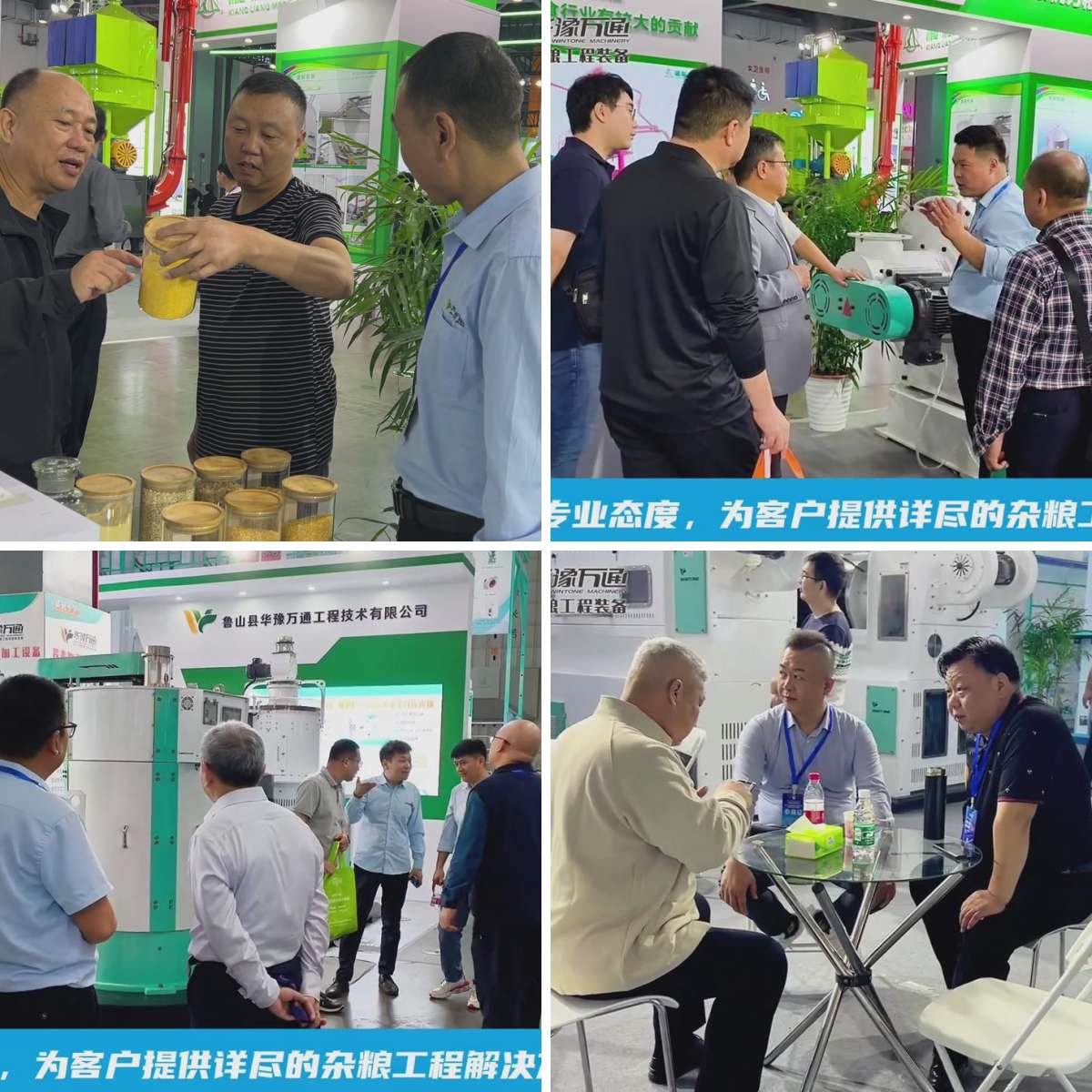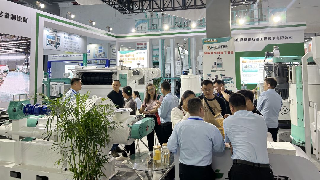 在裝備展區現場,華豫萬通展出的7款高端糧機裝備吸引了全場目光,現場氣氛熱烈,互動體驗豐富,眾多觀展游客和新老客戶朋友聚集展位,與華豫萬通團隊熱切交流,對華豫萬通的智能裝備和數智化糧食加工解決方案表現出極大興趣。