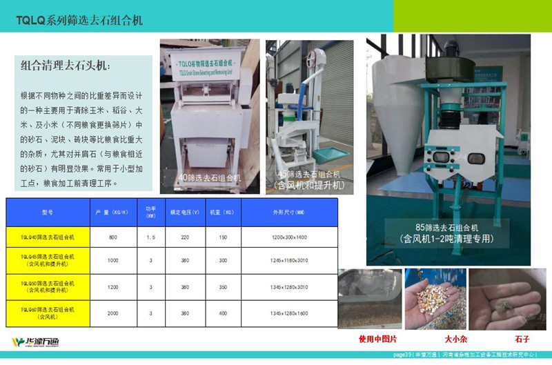 華豫萬通生產的TQLS系列組合清理去石機,該系列組合型清理去石機整合風機、振動篩、去石機為一體的糧食清理設備,常應用于糧食加工中清理去除大中小雜、石頭以及輕雜。其中 TQLS-45型清理去石機常應用1噸下糧食清理,而TQLS-85組合清理去石機,精工制作常應用于30噸左右糧食加工生產線的前段清理工序。