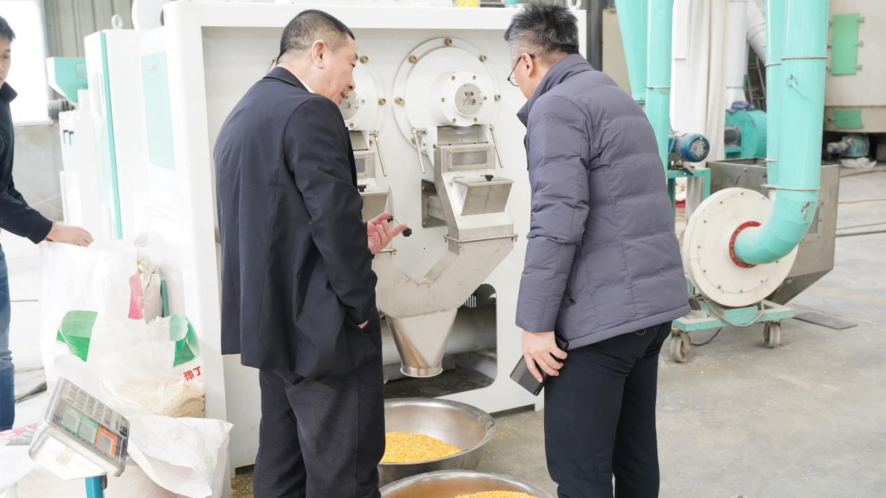 (沈總給客戶介紹雜糧脫皮核心設(shè)備)